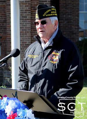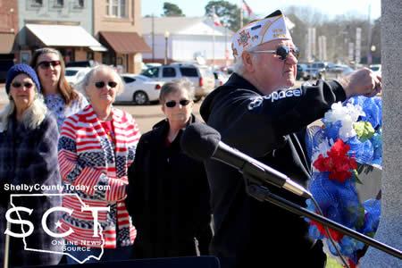 Gene Hutto, Post Commander, placed the Memorial wreath on the Shelby County Veterans Memorial.