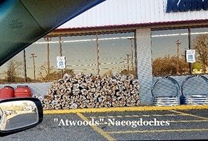 March 8, 2021 - On the day before the Texas great Snow-Ice Storm of 2021, Pam and I drove to Atwoods in Nacogdoches to buy bird food. We parked in front of a stack of bundled firewood about five sticks to a bundle and I waited in the car while Pam was in the store.  Suddenly as if they knew that we were about to be hit by a winter storm the next day, a large number of husky, young men drove up and feverishly began to snatch up these small bundles of oak.