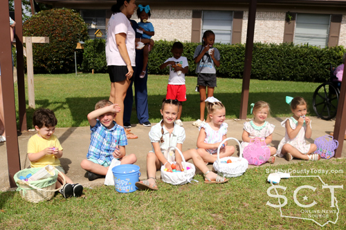 Participants in the Easter Egg hunt gathered at the front of the facility and could be seen thoroughly enjoying the event.