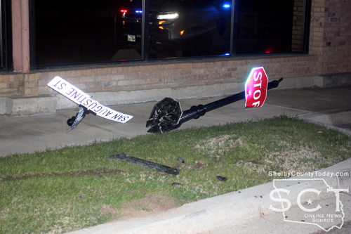 February 20, 2026 - The intersection of Austin and San Augustine Streets in Center was the scene of a single-vehicle crash, just off the Center square on Wednesday, February 18, 2026.