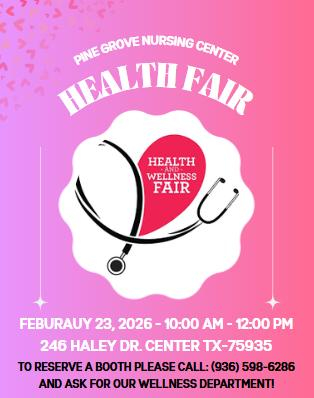 January 27, 2026 - Pine Grove Nursing Center is currently looking for health status vendors to present a booth at our upcoming Health Fair on February 23rd from 10am-12 noon.