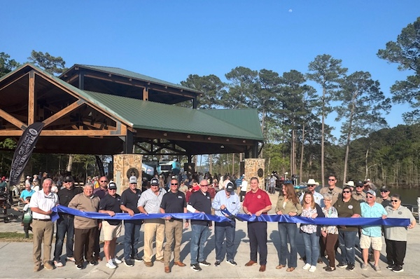 March 31, 2026 — Sabine River Authority of Texas (SRA) recently held a grand opening ceremony for the Sabinetown Recreation Area on Toledo Bend in conjunction with the Fishers of Men National Championship Tournament. The $16 million facility located at 712 Vantage Point in Hemphill, Texas, features a six-lane boat ramp in a deep-water protected cove, parking for nearly 300 trucks and trailers, a large tournament-style pavilion, public restrooms, 3.5 miles of improved asphalt roadway, and additional amenities. The facility was constructed to accommodate recreational boating and fishing, regional tournaments, and professional fishing events. Additionally, Sabine County, in coordination with SRA, is currently constructing an amphitheater to compliment Sabinetown improvements.